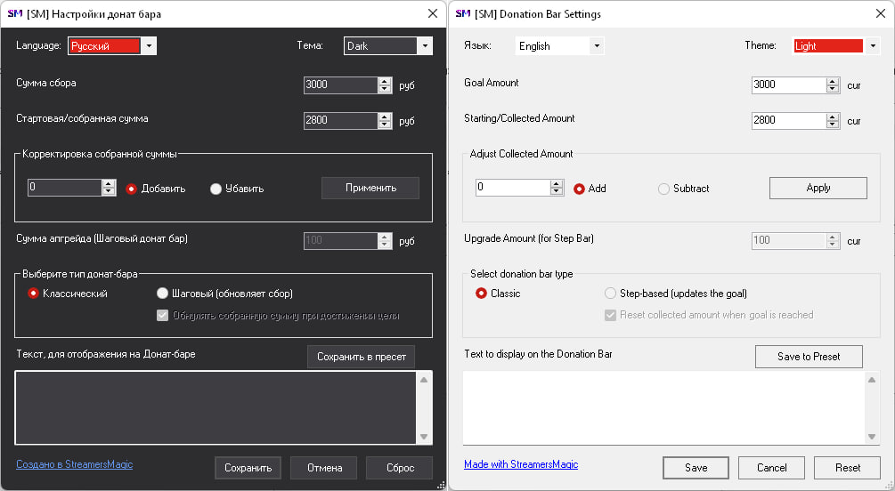 ➖Возможность менять донат-бары в ОБС в ТРИ клика