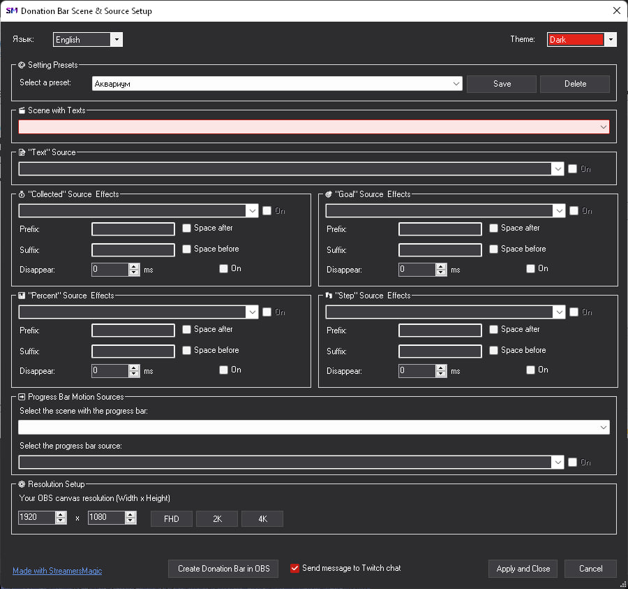 ➖Не требует импорта в ОБС. Автосоздание донат-бара