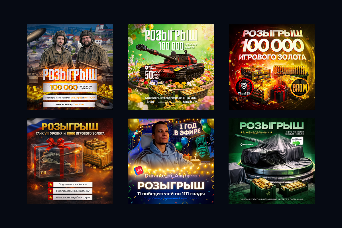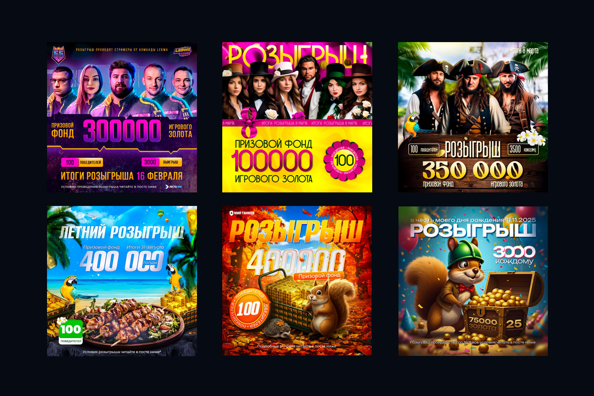 - Баннеры розыгрышей: Потому что халяву любят все, а красивую халяву — вдвойне.