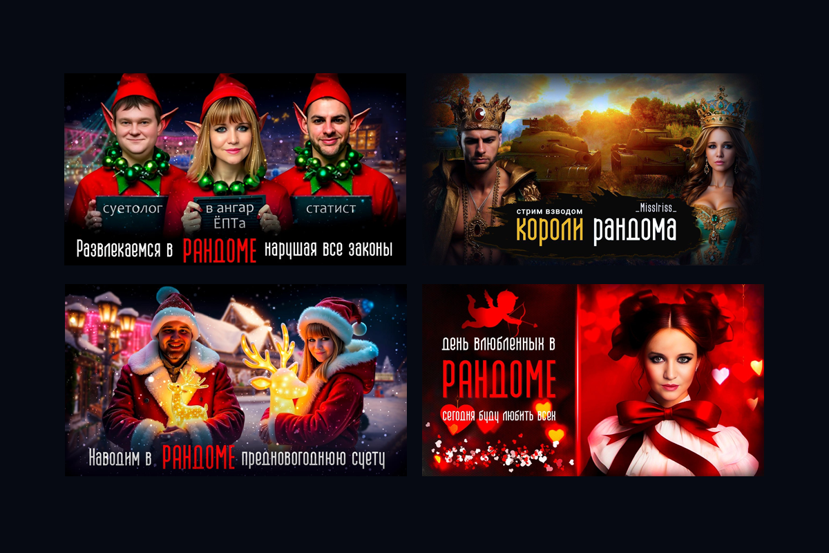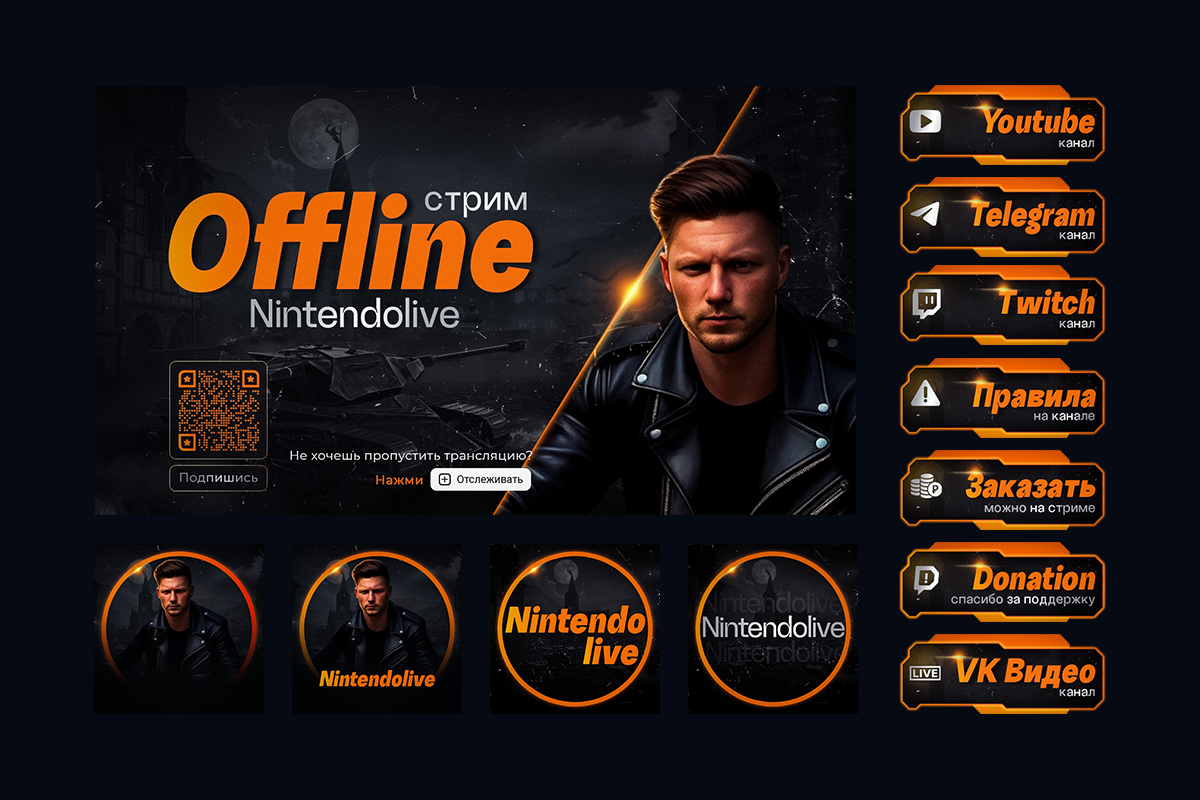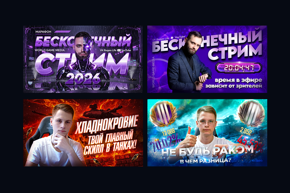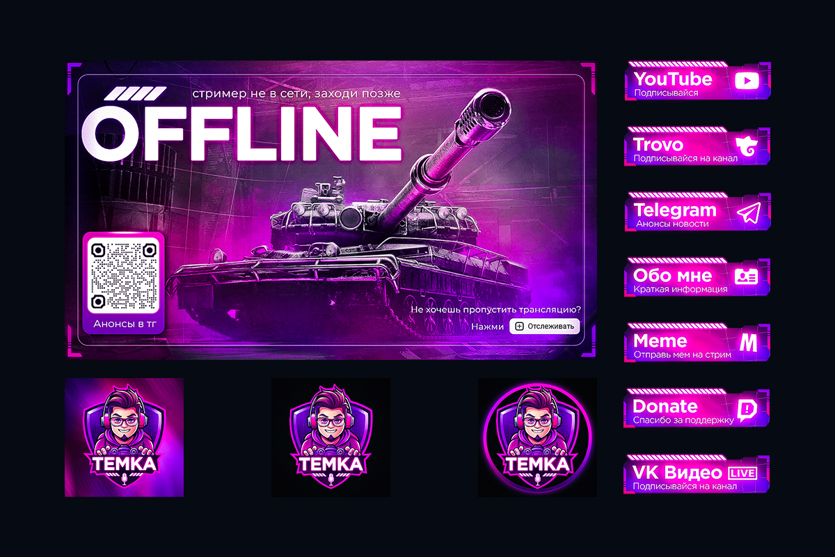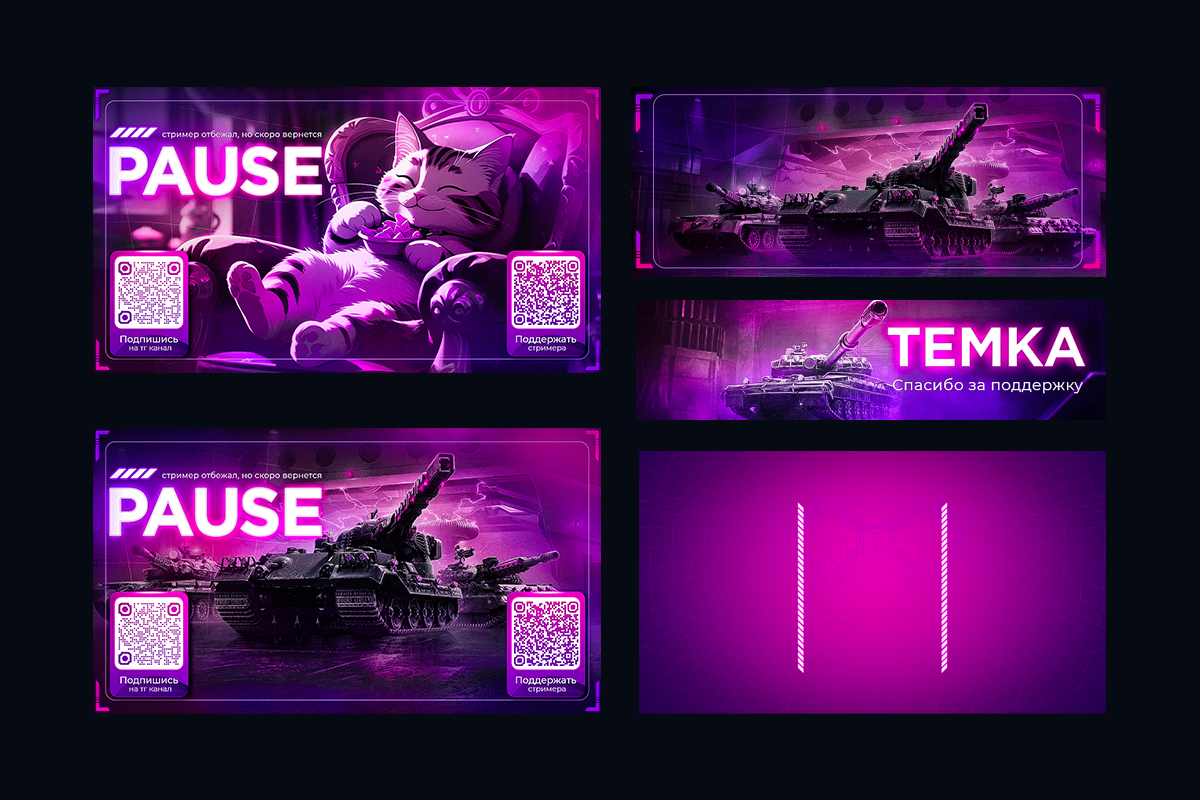 - Шапки каналов и Баннеры (оффлайн/пауза): Чтобы, когда вы ушли пить чай/спасать мир, канал не выглядел осиротевшим.